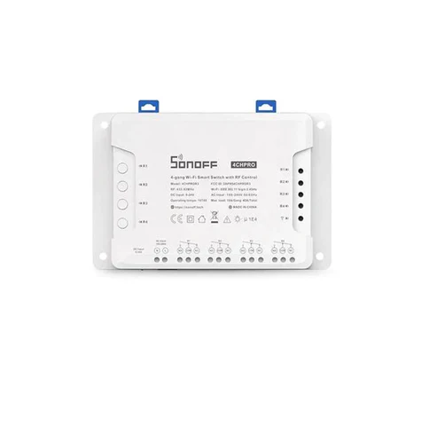 The SONOFF 4CH Pro R3 is a powerful 4-channel Wi-Fi smart switch designed to control multiple electrical devices independently or simultaneously. With four relay channels, the device allows you to automate lights, appliances, gates, garage doors, irrigation systems, and other electrical equipment from a single smart controller.