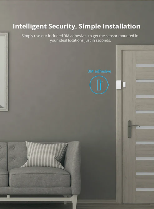 The SONOFF Zigbee Door Window Sensor is battery powered and installs easily with adhesive backing. Simply attach the sensor and magnet to a door or window frame to begin monitoring.