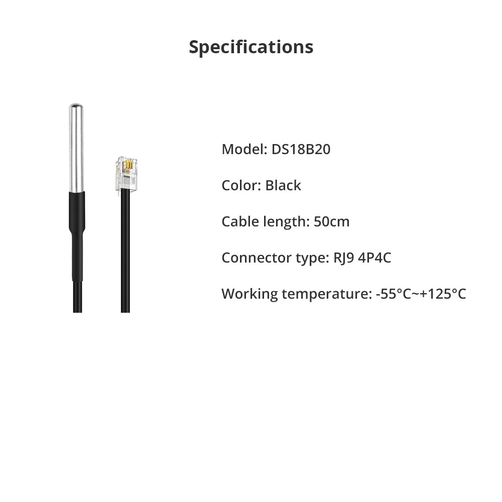 The SONOFF Waterproof Temperature Sensor (RJ9) is designed to provide accurate temperature monitoring for compatible SONOFF smart controllers such as the TH Elite and TH Origin series. This sensor allows your smart switch to monitor environmental temperature and trigger automation based on preset conditions.