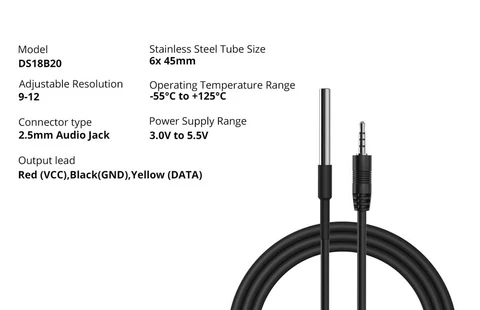 Equipped with a durable stainless-steel probe, the sensor is waterproof, corrosion-resistant, and suitable for use in humid or wet environments. It is ideal for applications such as aquariums, water tanks, hydroponics systems, greenhouses, and temperature-sensitive equipment.