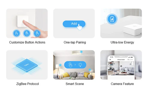 Easy to install and use, the Sonoff Zigbee Button pairs seamlessly with Zigbee smart systems such as eWeLink Zigbee gateways and other compatible hubs, allowing reliable control across your smart home network. Ideal for controlling lights, smart plugs, or other connected devices from a fixed spot — perfect for bedrooms, entryways, living areas, or desks.
