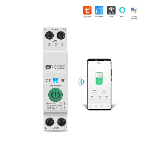 Monitor energy usage and control high‑power electrical circuits up to 13.8 kW (63A) with this Tuya Smart Life WiFi Power Monitoring Switch. View real‑time electricity data, set schedules, and enjoy voice control with Alexa & Google Home.