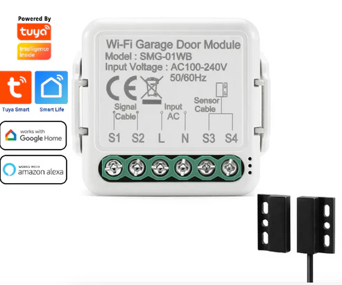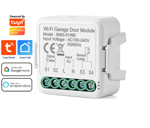 Control your gate or garage door remotely with the Tuya WiFi Gate & Garage Door Opener Mini Switch. Works with Smart Life app, Alexa, and Google Home.